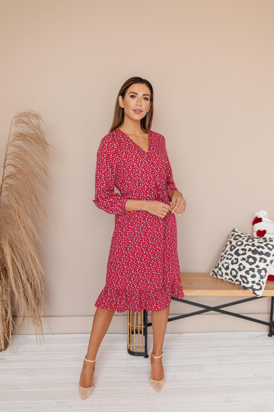 Sansa Red Floral Ruffle Wrap Dress - Maternity Friendly - Nursing Friendly - FINAL SALE