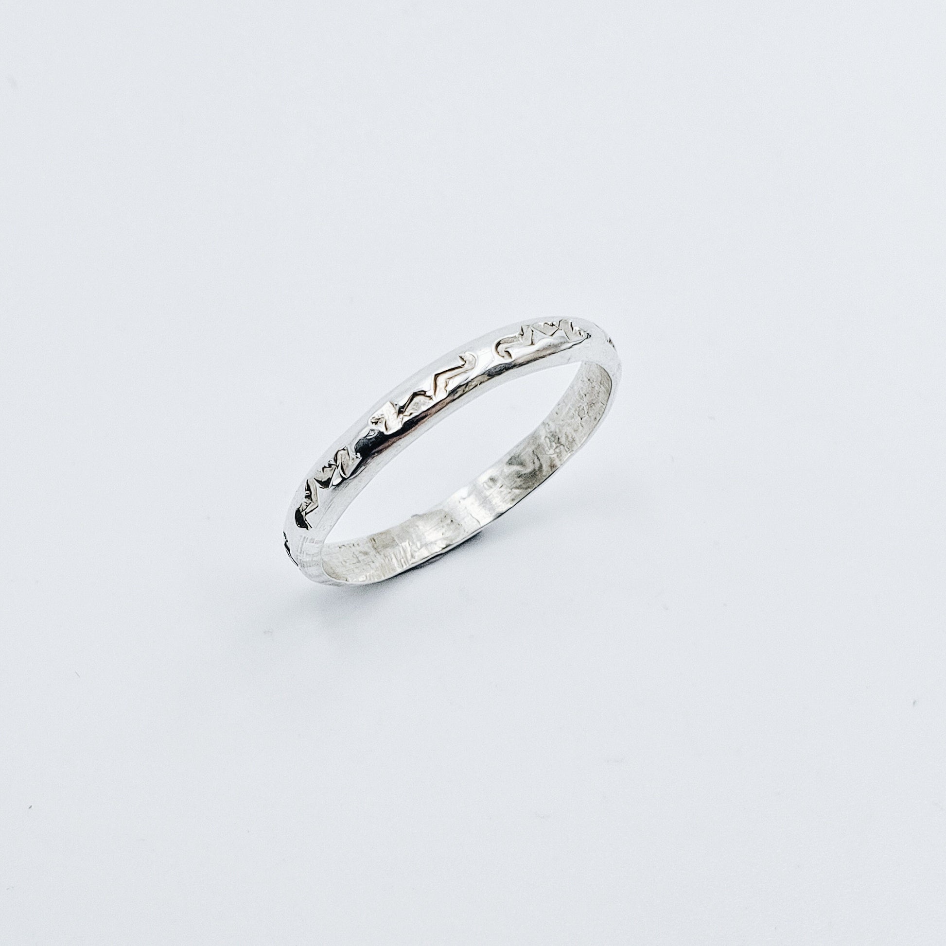 Handcrafted Native American Navajo ring. Sterling silver ring, featuring a traditional hand stamp around the band. Can be worn low or as a midi ring.